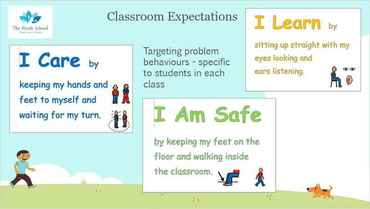 Positive Behaviour for Learning (PBL) forms an integral part of life at The Ponds School and is deeply embedded into programs and routines. All students are encouraged and supported to demonstrate behaviour which epitomises and promotes Caring, Learning and Being Safe in every situation.